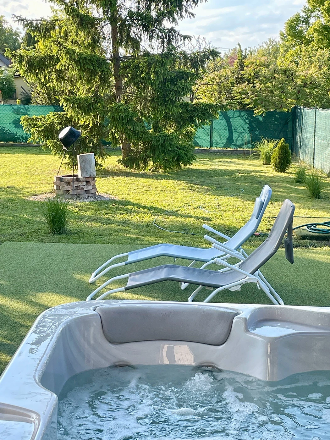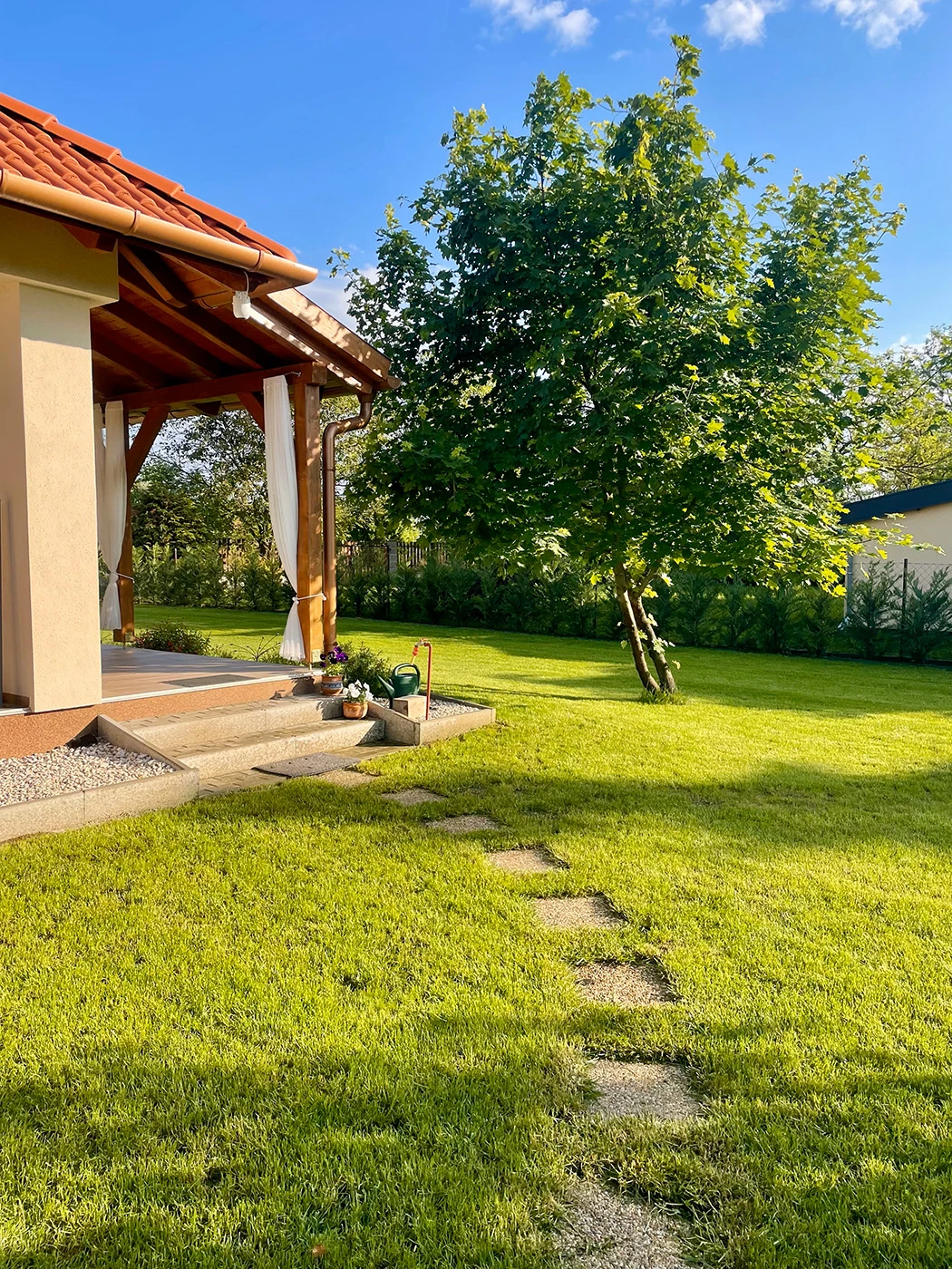 Teljesen felszerelt, modern és természetközeli szálláshely hatalmas kerttel, 3 hálószobával, medencével, tűzrakóval, gyors WiFi-vel.